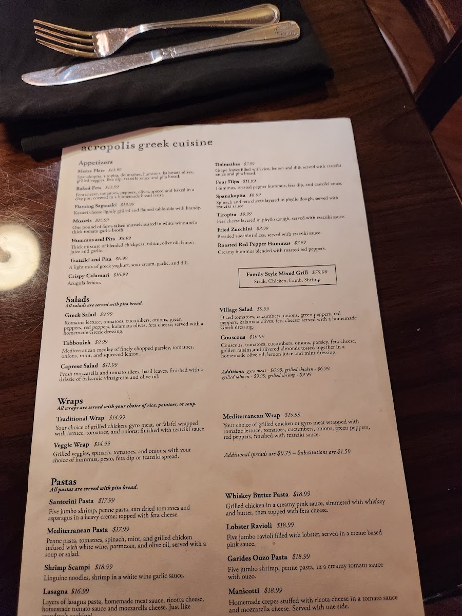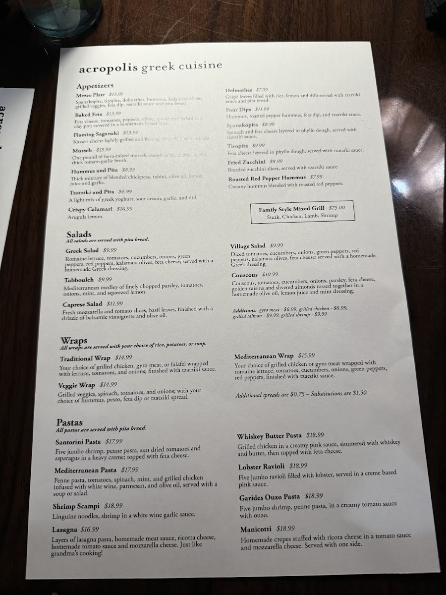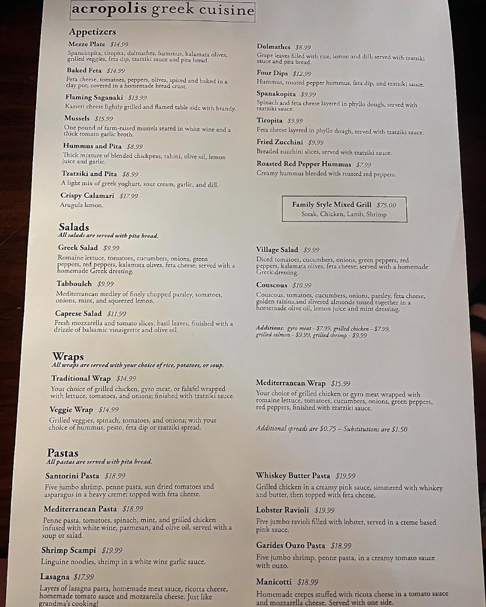 With glowing reviews praising its atmosphere and friendly service, Acropolis invites you to savor the flavors of Greece in a warm, welcoming setting. Guests consistently rave about the dishes, making it a must-visit eatery in South Central Texas.